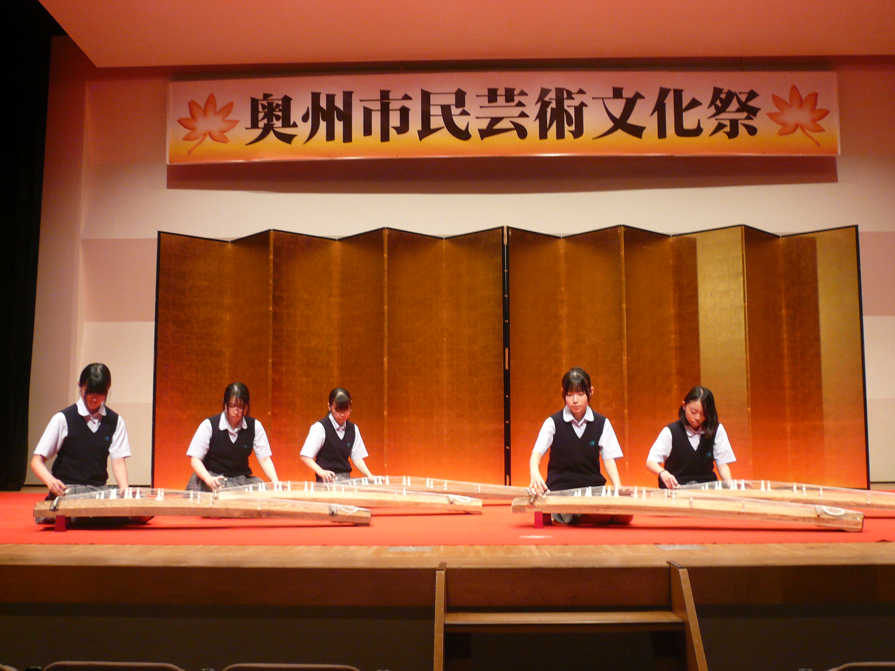 9月27日(土)金ケ崎要害歴史館で開催された「お月見の夕べ」、28日(日)奥州市文化会館で開催された「奥州市民芸術文化祭三曲演奏会」の2つの演奏会に邦楽部が出演しました。 お月見の夕べでの屋外演奏は初めてでしたが、秋の気配を感じながら、美しい箏の音色を響かせることができました。