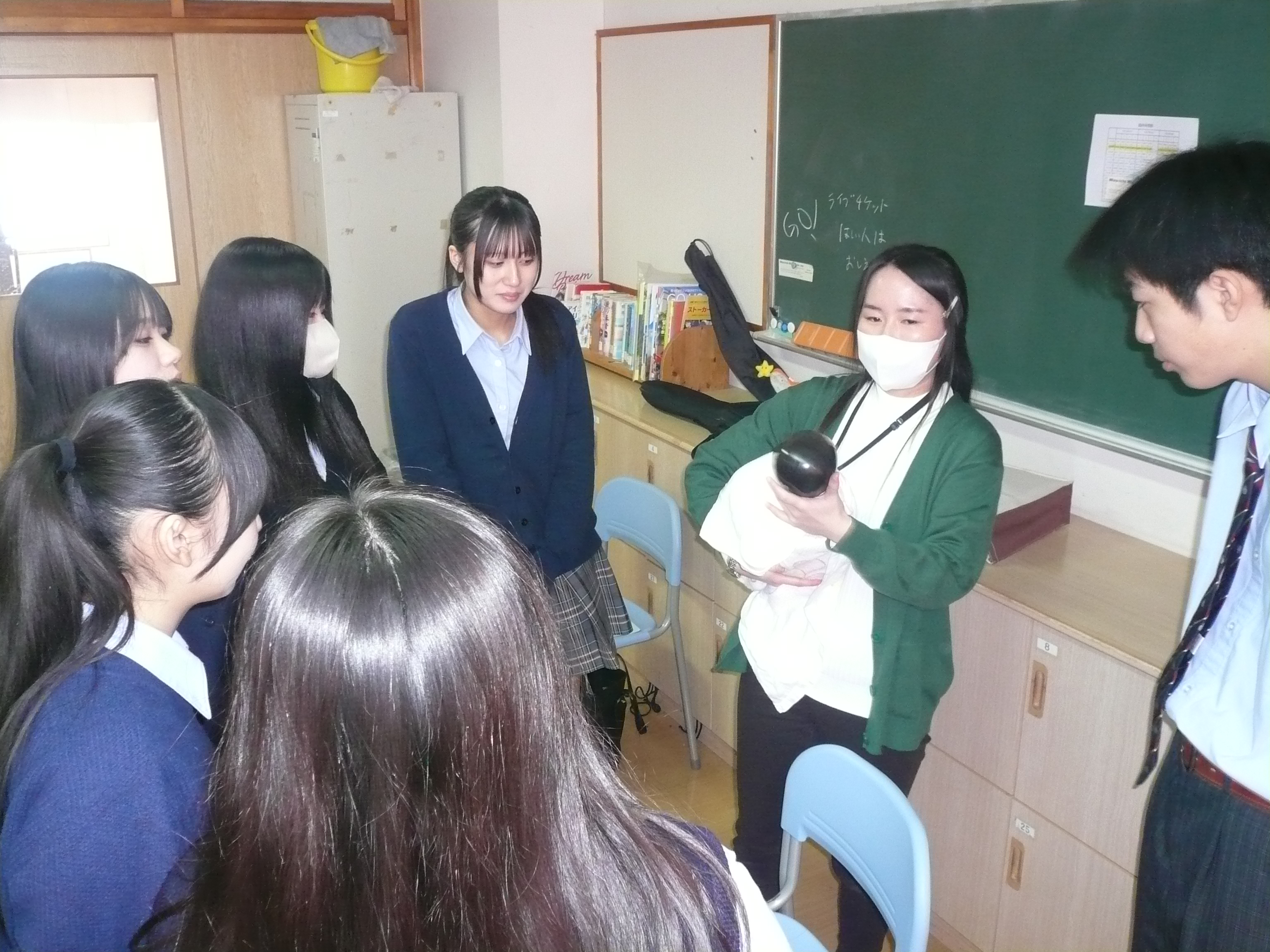 2月2日と5日の2日間、1年生4クラスで奥州市の保健師さんを講師にお招きし「思春期保健講話」を実施しました。 妊婦体験や赤ちゃん人形の抱っこ体験を通じて、命の大切さやこれからの自分の人生を真剣に考える機会となりました。