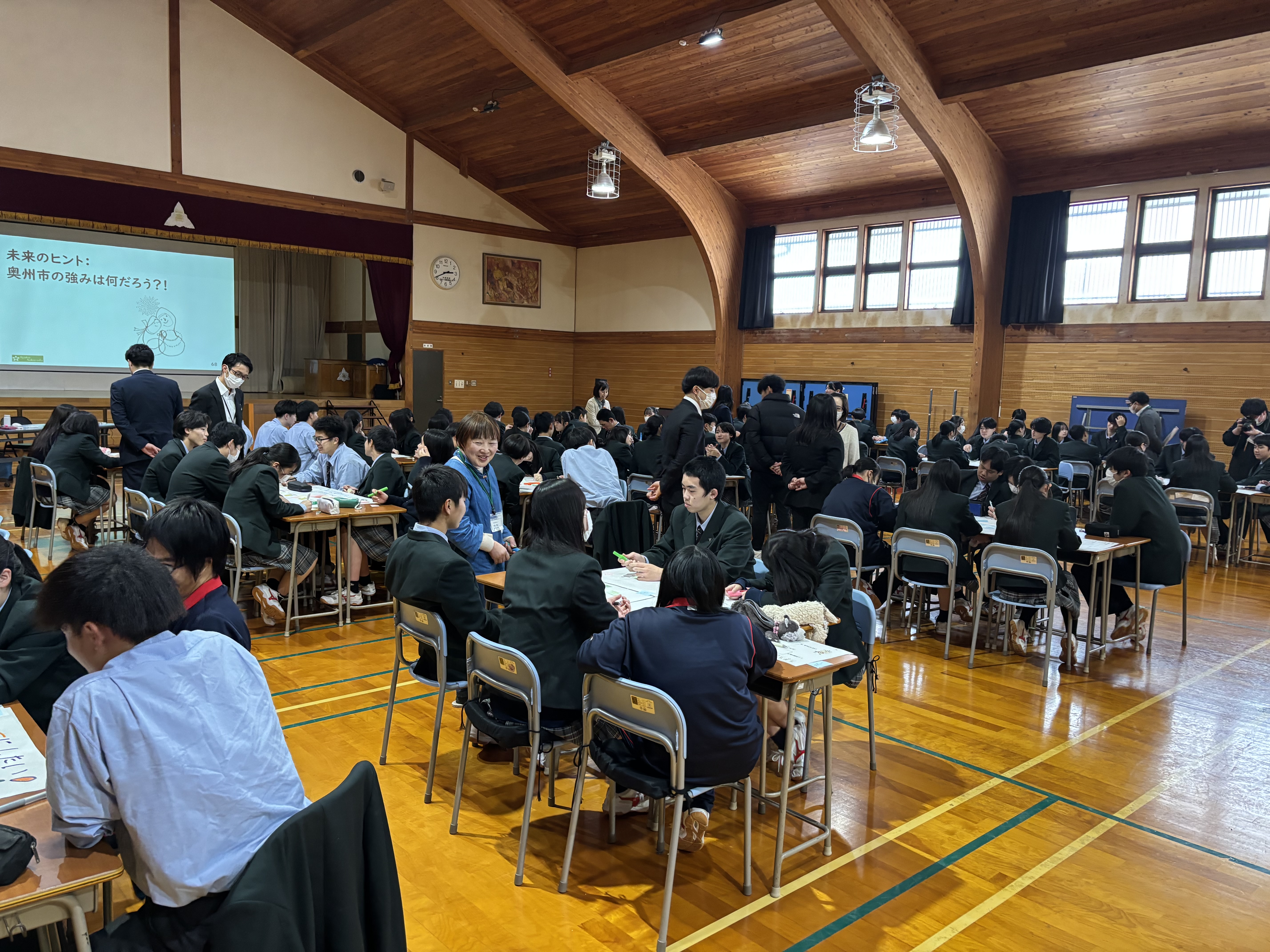 12月4日(木)1年生を対象とした環境学習会を実施しました。「世界と日本を知り、住みたいまち奥州市の未来を考え、伝えよう」とのタイトルから、エコアナウンサーの櫻田彩子さんからご講演をいただき、その後班ごとに環境とまちの持続可能性をつなげ「こんな奥州市にしたい!」を考えました。 企画、運営していただいた奥州市生活環境課、GX推進室、アジア航測(株)、めぐみネットの皆さん、ありがとうございました。
